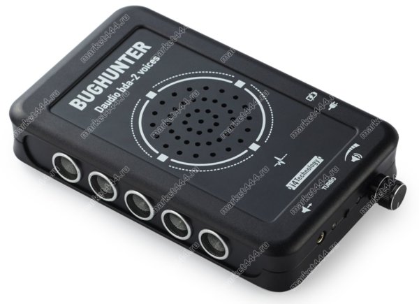 Подавитель ""BugHunter DAudio bda-2 Voices"" использует мощное ультразвуковое излучение, которое не воспринимается человеческим ухом, но ""зашумляет"" любые активные микрофоны в жучках, диктофонах, телефонах и т.д. Также данная модель опционально позволяет задействовать дополнительную акустическую помеху. Прибор размещается рядом с людьми, ведущими важные переговоры, которые не должны быть записаны, при этом УЗ динамики направляются в сторону, где с наибольшей долей вероятности могут размещаться звукозаписывающие устройства.