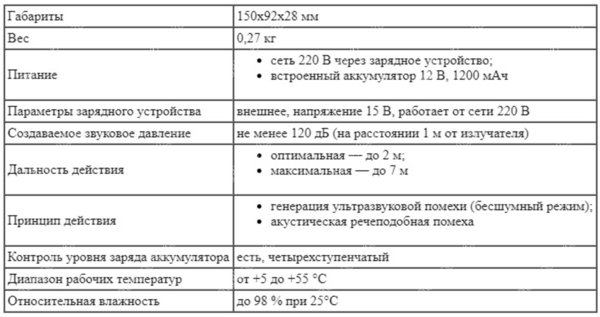 2. Новый алгоритм генерации ультразвука. Модифицированный прибор излучает еще более ""запутанный"" и непостоянный УЗ сигнал, который максимально эффективно блокирует работу любых звукозаписывающих устройств, в том числе профессиональных с защитой от подавления.